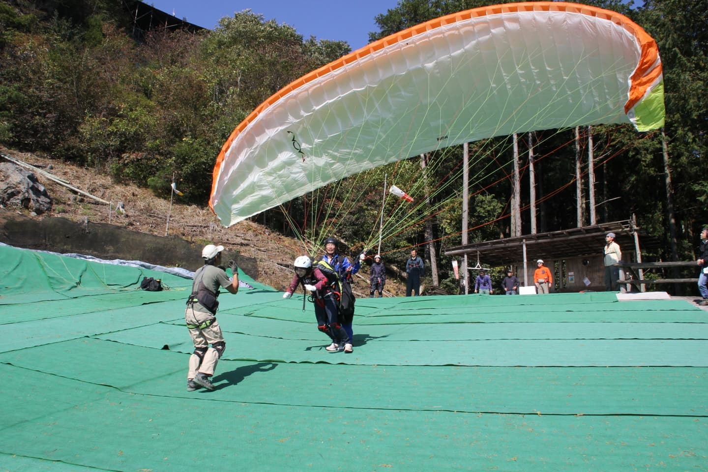 インストラクターと2人乗りで高低差約300mの山からフライトします。