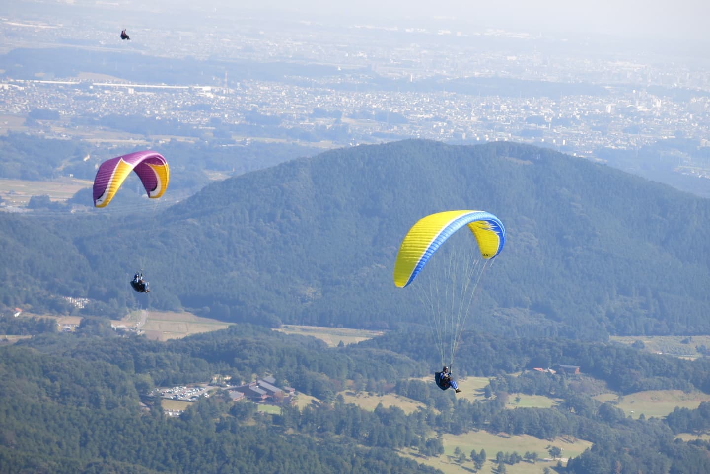 パラグライダーは自然とともに楽しむスポーツです。フライトに適した風が吹かなければ楽しめません。ここ、スカイパーク宇都宮は関東平野を一望でき、1年中、素直な風が入る場所に位置しています。フライト確率が高ければ、それだけ上達も早くなりますよ♪