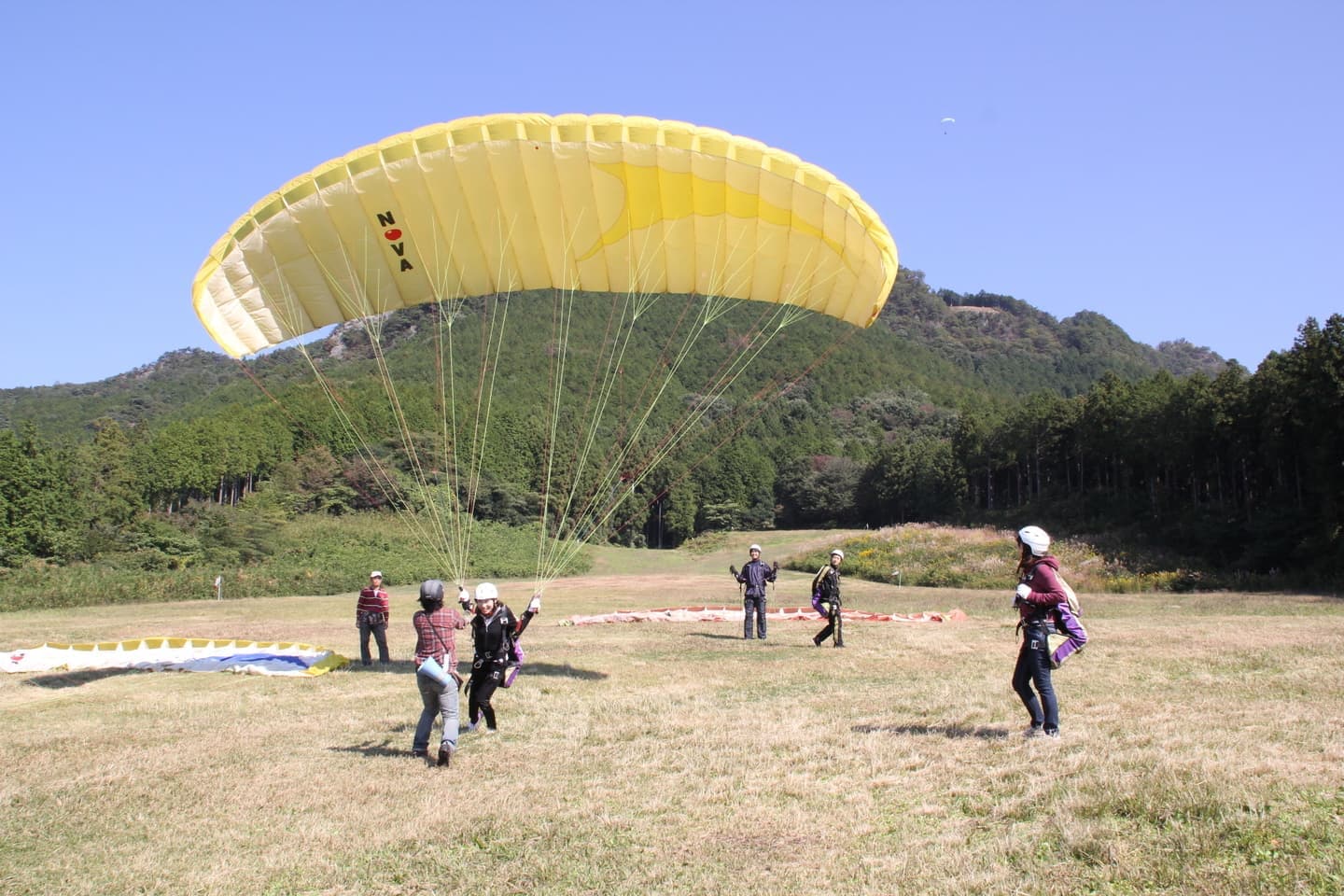 インストラクターと2人乗りで高低差約300mの山からフライトします。