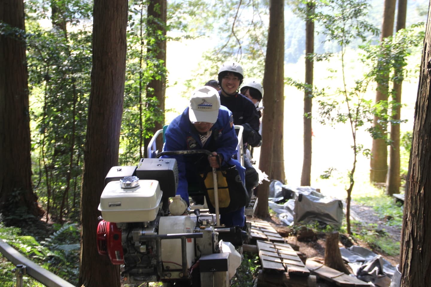 - 乗用モノレールの運転は、モノレールオペレーターの方に限ります。途中、急勾配を通過しますので、手すりにおつかまり下さい。また、乗車中に揺らしたりすると故障・事故の原因となりますので、注意して下さい。