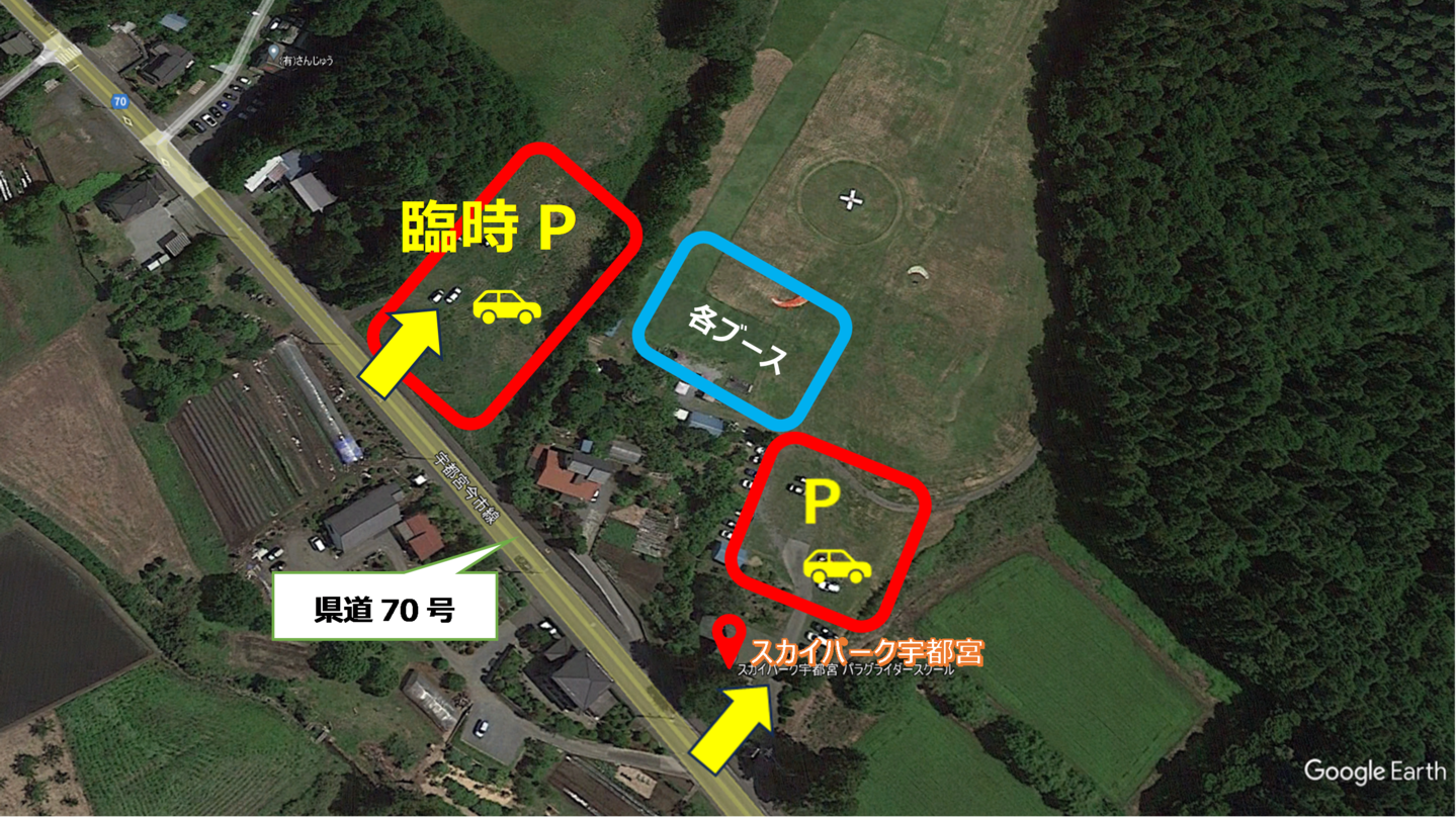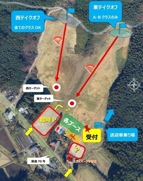 スカイパーク宇都宮では2023年にランディング・講習斜面を拡張し,その広さは東京ドーム約1.3個分!ここを最大限利用した試乗会です。