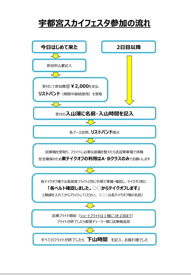 | 当日の受付について | 受付で宇都宮スカイフェスタ参加申込書を記入提出してください。あらかじめ下記申込書をダウンロードして記入してきていただくとスムーズです。お手元にプリンターがない場合はセブンイレブン「ネットプリント」等のご利用も便利です。 |